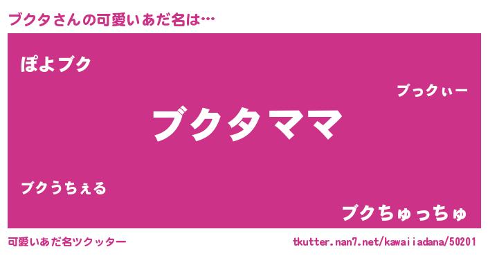 | ヒーロー風カッコイイあだ名 | 『ネオブクタ』『仮面ブクダー』 |