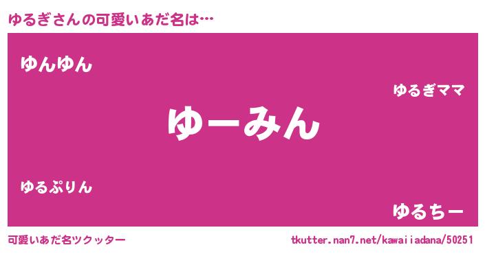 | 恥ずかしいあだ名 | 『プリティーゆるぎ』『ゆるっちょ』 |