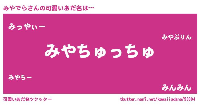 | ヒーロー風カッコイイあだ名 | 『愛の使者みやでら』『天弓騎士ミヤ』 |