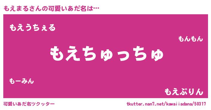 | 料理風あだ名 | 『もえまるのトマト煮』『もえまるごはん』 |