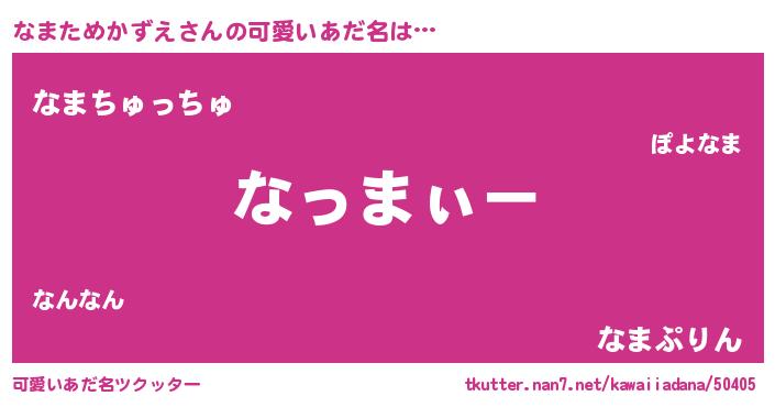 | 女子向けラノベタイトル風あだ名 | 『なまためかずえの卵を拾いまして』 |