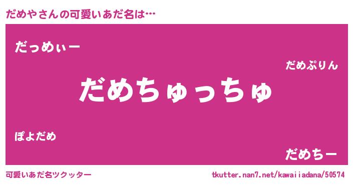 | ヒーロー風カッコイイあだ名 | 『慈愛の使者だめや』『黄金騎士ダメ』 |