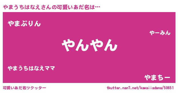 | 恥ずかしいあだ名 | 『プリティーやまうちはなえ』『やまちん』 |