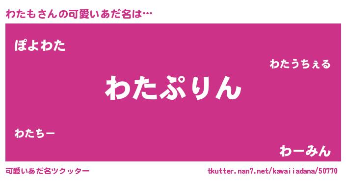 | ヒーロー風カッコイイあだ名 | 『仮面ワタダー』『超時空戦士ワタモ』 |