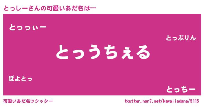 | 男性向けラノベタイトル風あだ名 | 『Re:とっしーから始める異世界生活』 |