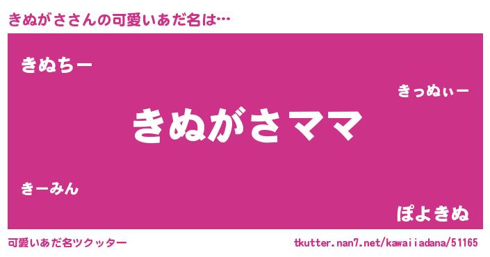 | 男性向けラノベタイトル風あだ名 | 『きぬがさという概念が存在しない退屈な世界 』 |