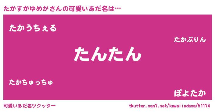 | 恥ずかしいあだ名 | 『プリティーたかすかゆめか』『たかちん』 |