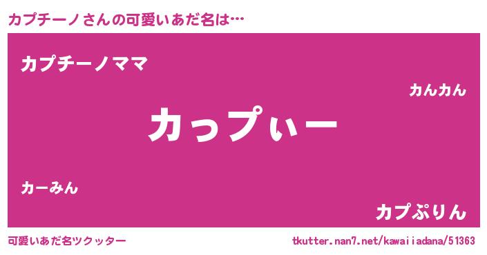 | 男性向けラノベタイトル風あだ名 | 『カプチーノの嫁は女の子じゃないと思った?』 |