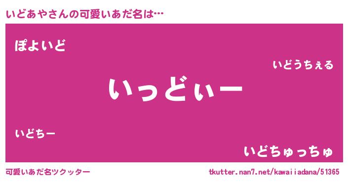 | 女子向けラノベタイトル風あだ名 | 『いどあやの卵を拾いまして』 |