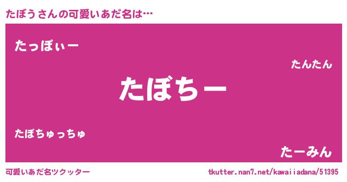 | 意味不明あだ名 | 『たぼうフォーエバー』『ペロリンたぼう』 |
