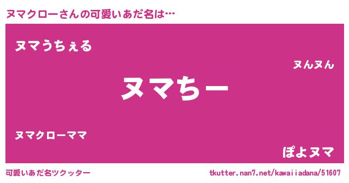| 2回繰り返すあだ名 | 『ヌヌママ』『もそもそ』『ヌマヌマ』 |
