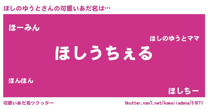 | 恥ずかしいあだ名 | 『ホシノユウトデラックス』『ほしっちょ』 |