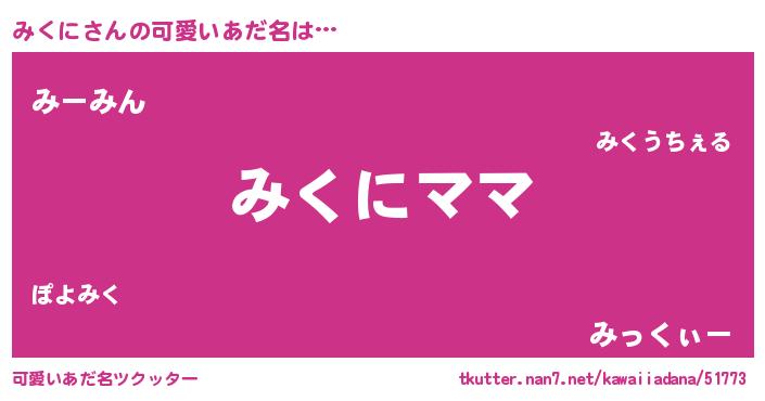 | ヘコむあだ名 | 『みくに(笑)』『みくを』『酢こんぶ』 |