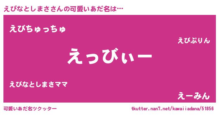 | ヘコむあだ名 | 『えびぷりん』『えびなとしまさ(小並感)』 |