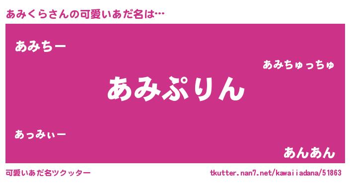 | 欧米人風あだ名 | 『アンジェラ・あみくら』 |