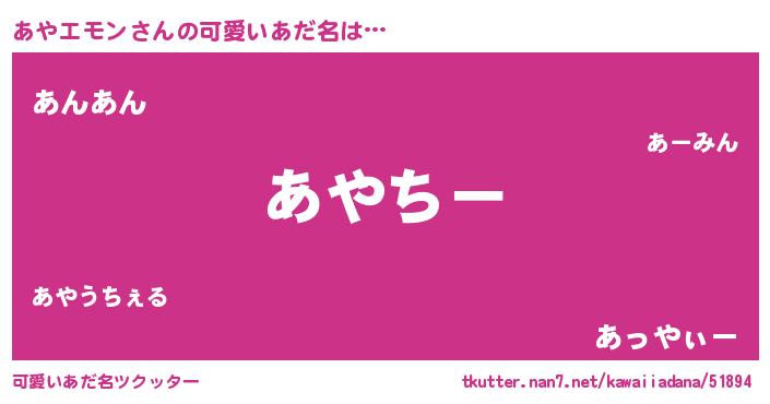 | 意味不明あだ名 | 『あやエモンフォーエバー』 |