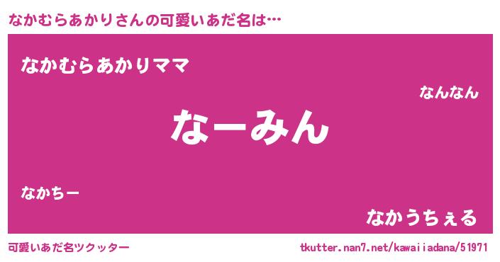 | 男性向けラノベタイトル風あだ名 | 『うちのなかむらあかりが世界を掌握している!』 |