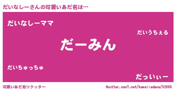 | 男性向けラノベタイトル風あだ名 | 『うちのだいなしーが世界を掌握している!』 |