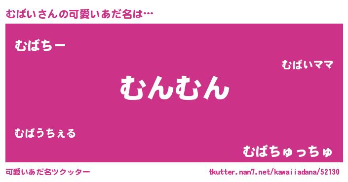 | 2回繰り返すあだ名 | 『むばむば』『むむばば』『ふかふか』 |
