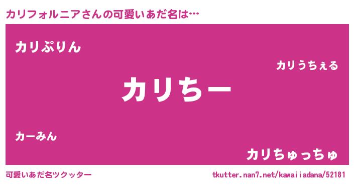 | 欧米人風あだ名 | 『カリフォルニアクリステル』 |