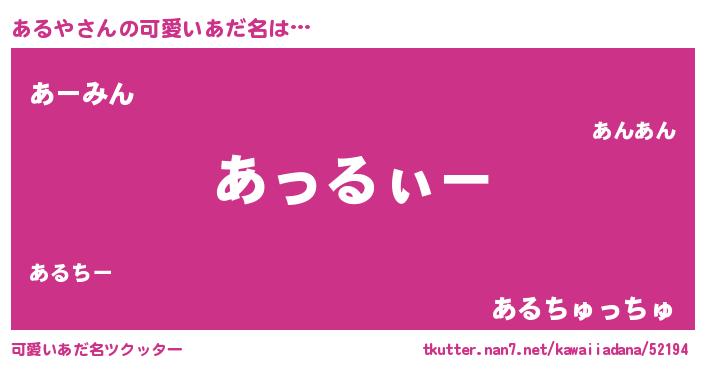 | 女子向けラノベタイトル風あだ名 | 『あるや様がみてる』『死神あるやの再婚』 |