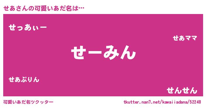 | ヘコむあだ名 | 『せあ太郎』『せあにゅー』 |