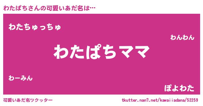 | 意味不明あだ名 | 『永久保存わたぱち』『ペロリンわたぱち』 |