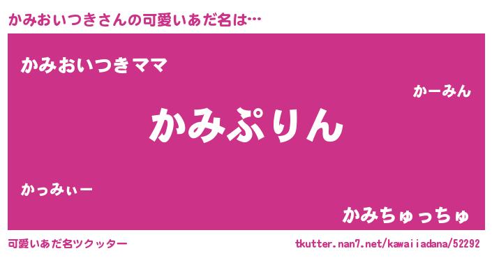 | 男性向けラノベタイトル風あだ名 | 『かみおいつき~年齢イコール彼女いない歴の魔法使い~』 |