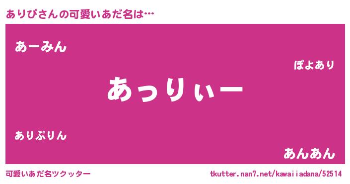 | 女子向けラノベタイトル風あだ名 | 『ありぴ様がみてる』 |