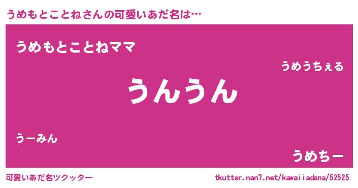 | 恥ずかしいあだ名 | 『プリティーうめもとことね』『うめちん』 |