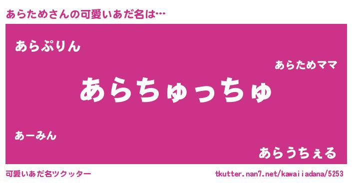 | ヘコむあだ名 | 『あらため(震え声)』『あらにゅー』 |