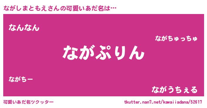 | 恥ずかしいあだ名 | 『プリティーながしまともえ』『ながちん』 |