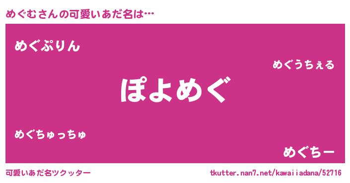 | 意味不明あだ名 | 『住所不定無職めぐむ(8歳)』『自称めぐむ』 |