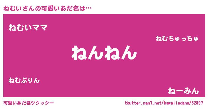 | ヘコむあだ名 | 『ねむにゅー』『ねむい(震え声)』 |