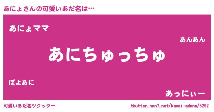 | 2回繰り返すあだ名 | 『はあはあ』『こんこん』『あにあに』 |
