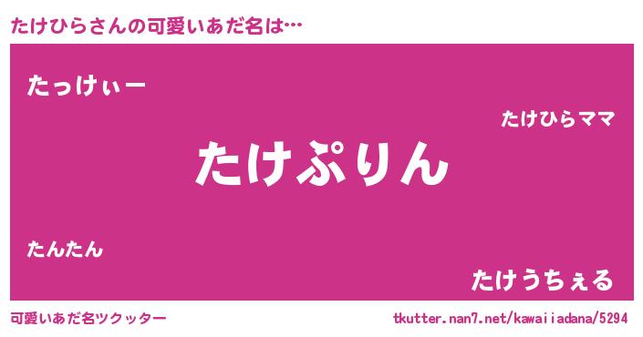| 男性向けラノベタイトル風あだ名 | 『タケヒラスレイヤー』 |