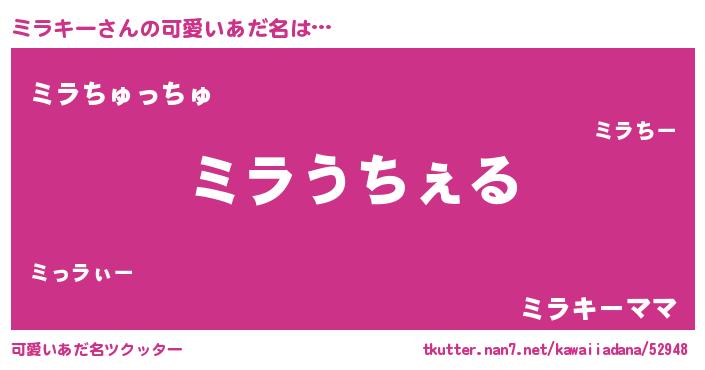 | 意味不明あだ名 | 『自称ミラキー』『永久保存ミラキー』 |