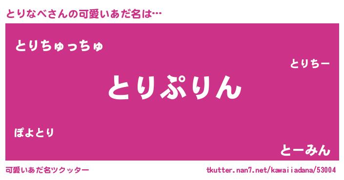 | 男性向けラノベタイトル風あだ名 | 『とりなべに滅ぼされるだけの簡単なお仕事です』 |