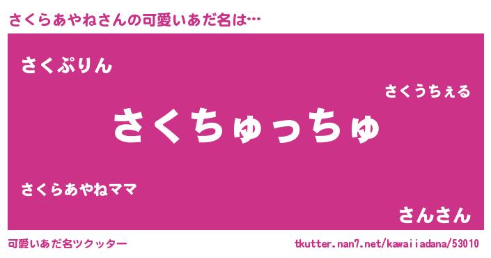 | 恥ずかしいあだ名 | 『ボンバーヘッドさく』『さくちん』 |