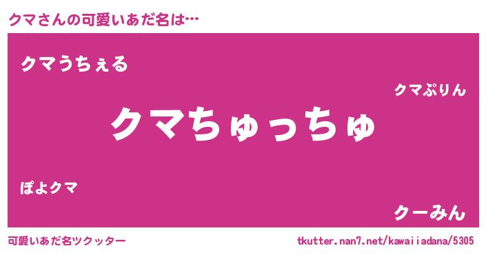 | ヒーロー風カッコイイあだ名 | 『慈愛の使者クマ』『超時空戦士クマ』 |