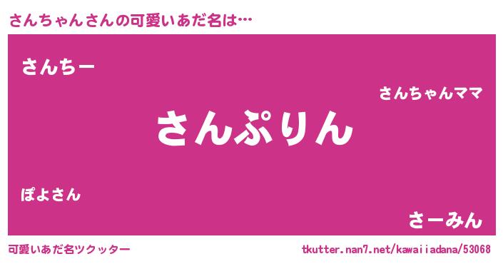 | 女子向けラノベタイトル風あだ名 | 『さんちゃんの玉の輿計画!』 |