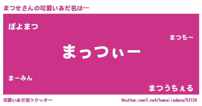 | 女子向けラノベタイトル風あだ名 | 『まつせの卵を拾いまして』『闇のまつせ』 |