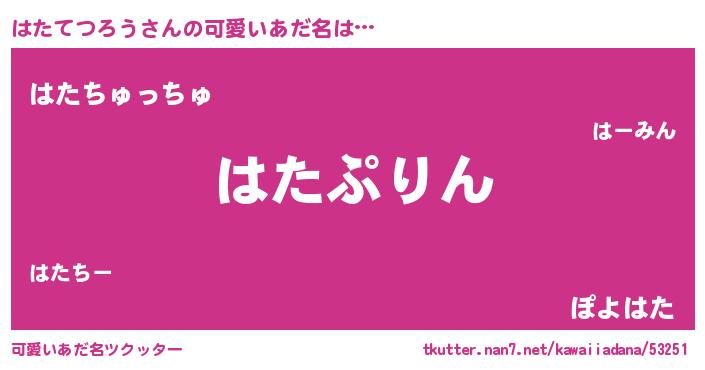 | 女子向けラノベタイトル風あだ名 | 『はたてつろうの玉の輿計画!』 |