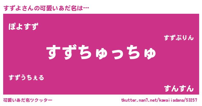 | ヒーロー風カッコイイあだ名 | 『慈愛の使者すずよ』『仮面スズダー』 |