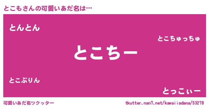 | 意味不明あだ名 | 『とこもフォーエバー』『ペロリンとこも』 |