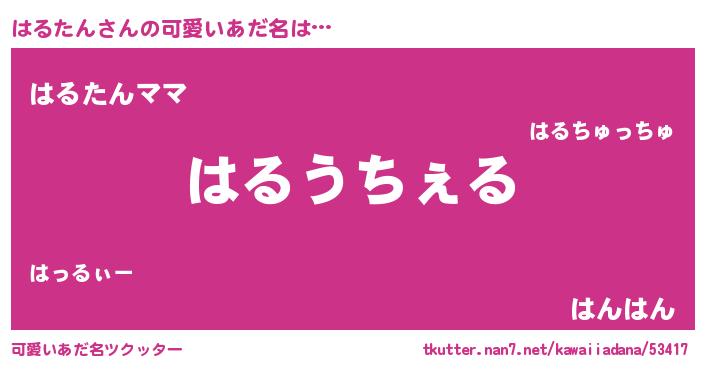 | 意味不明あだ名 | 『自称はるたん』『永久保存はるたん』 |