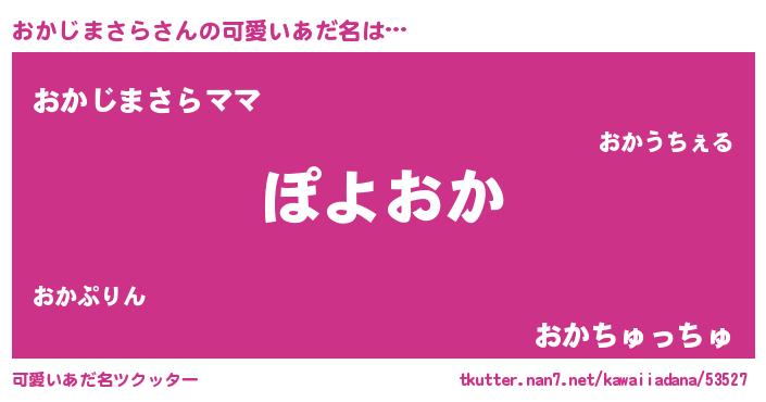 | ヘコむあだ名 | 『おかじまさら(苦笑)』『酢こんぶ』 |