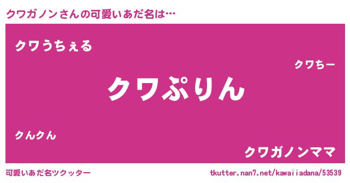| ヘコむあだ名 | 『クワガノン(苦笑)』『酢こんぶ』 |