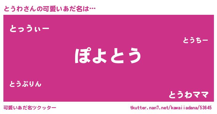 | ヘコむあだ名 | 『とうぷりん』『とうわ(遠い目)』 |