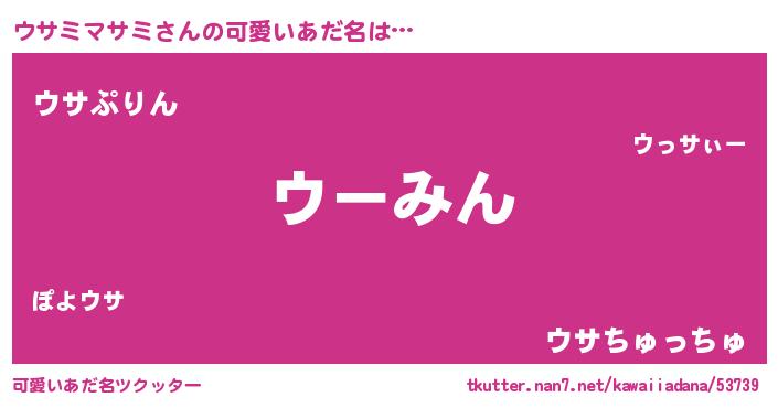 | 男性向けラノベタイトル風あだ名 | 『うちのウサミマサミが世界を掌握している!』 |